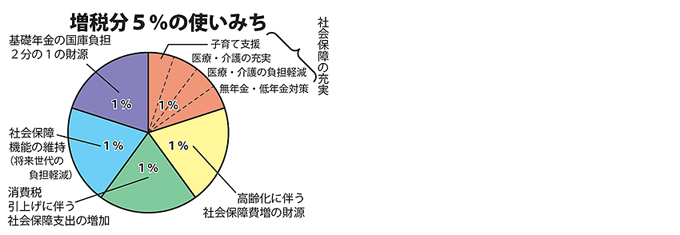 右の増税分の使いみちに示される通り、社会保障と税の一体改革は、社会保障の維持・充実と、そのための財源としての消費税増税とがセットでした。